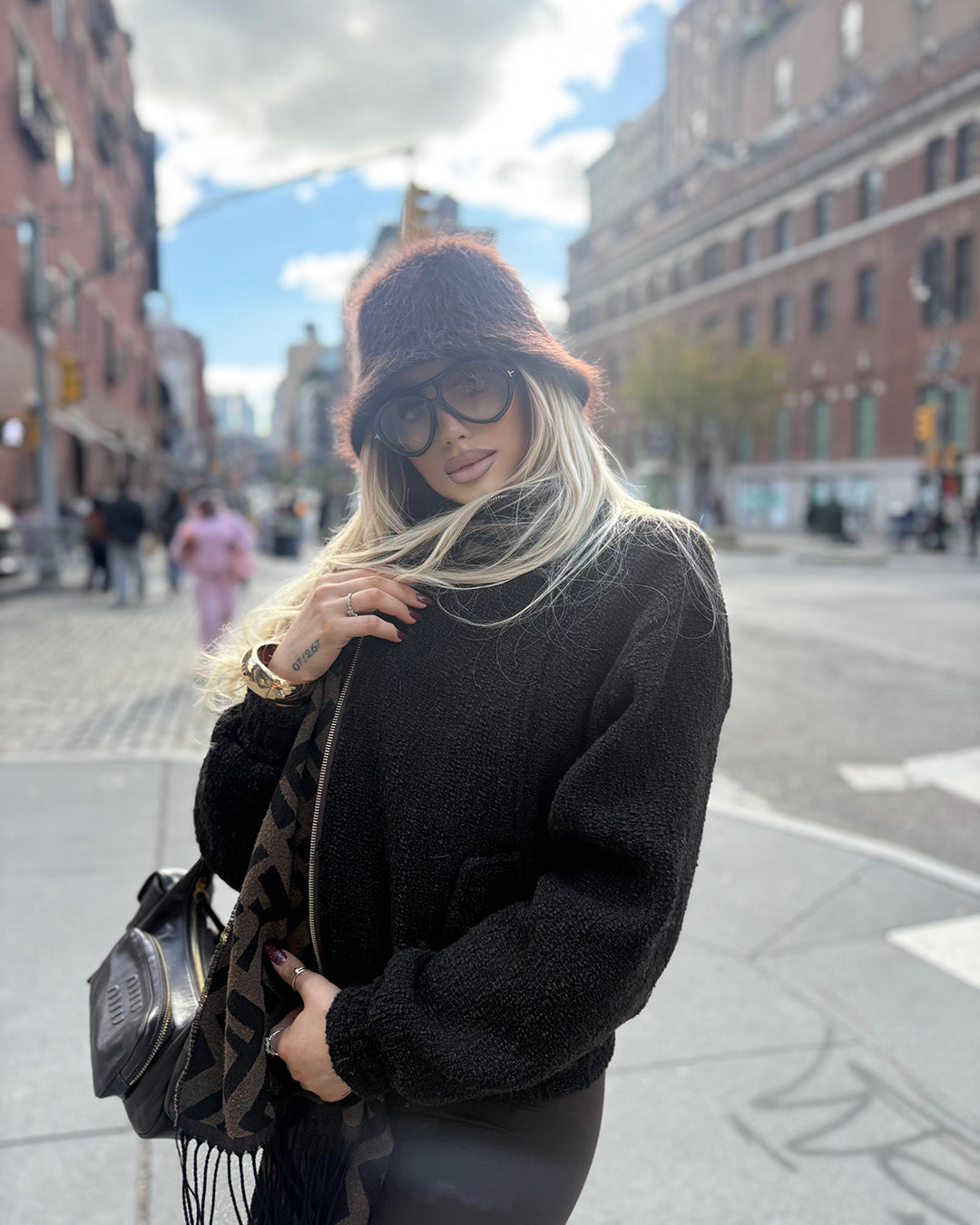 „Lunar“ е оувърсайз бомбър, изработен от фино букле в черен цвят с дълбок шоколадов оттенък – топъл, наситен и елегантен.